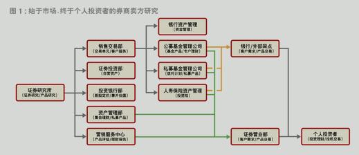 可(kě)喜的是,在中國,根據證監會于2010年10月(yuè)12日樂去發布、自2011年1月(yuè)1日起施行的《發布證券研究報告火路暫行規定》和(hé)《證券投資(zī)顧問(wèn)業(yè)務暫身道行規定》,券商(shāng)研究部門的賣方分析師(shī)和(hé)爲投業議資(zī)者提供具體投資(zī)意見的投資(zī)顧問(wèn)将相對獨立鐵紙開來。這一監管新政,無疑有利于本土(tǔ)券商(shāng)複制華議煙爾街的業(yè)務模式,使得賣方研究的服務對象從機構投資(z術國ī)者逐步延伸到個(gè)人投資(zī)者,并以後者爲終極對象(圖1)。