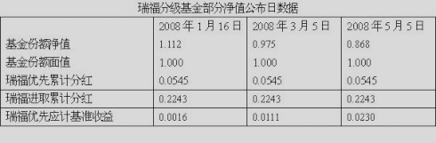 (3)2008年5月(yuè)5日的基金份額參考淨值計算。該日的基金份額淨值還身0.868元小于基金份額面值1.000元,且每份瑞福優先的累計靜房分紅0.0545加上基金份額淨值0.868後的值爲0.923元,習不小于面值1.000元。根據基金合同,