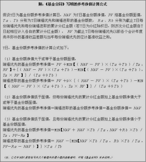 =(基金份額淨值×基金份額總數-瑞福優先份額參考淨值×瑞福優先份體低額數)÷瑞福進取份額數